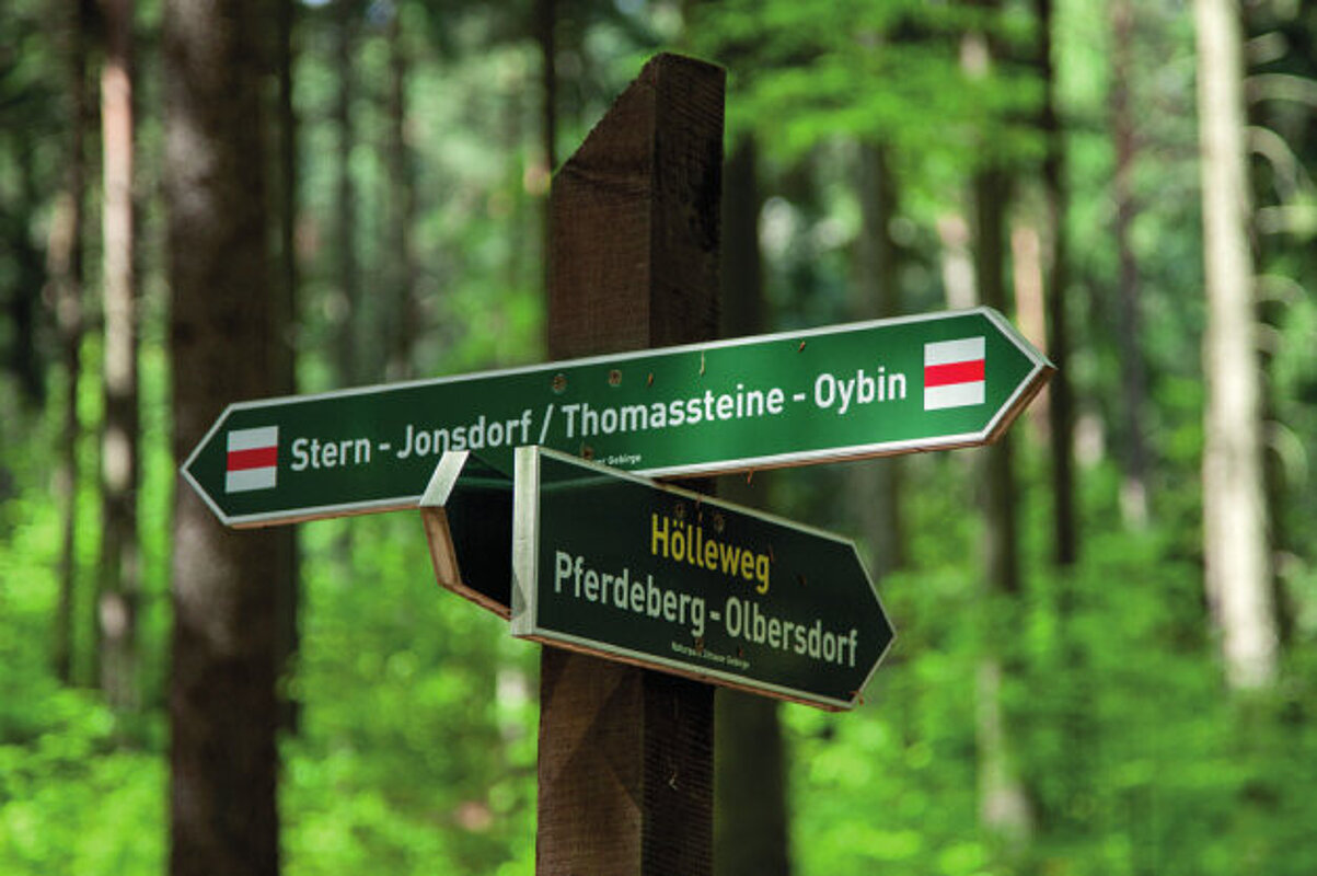 Einfach loswandern, vielleicht zum Töpfer oder Hochwald, die große und kleine Felsengasse entlang, oder nach Jonsdorf um in der Felsenstadt die Mühlsteinbrüche zu erkunden. Absolute Ruhe und wundervolle Aussichten von den Gratzer Höhlen oder dem Ameisenberg finden. Oder aber mit den Kindern den Steinzoo zu Fuß entdecken.